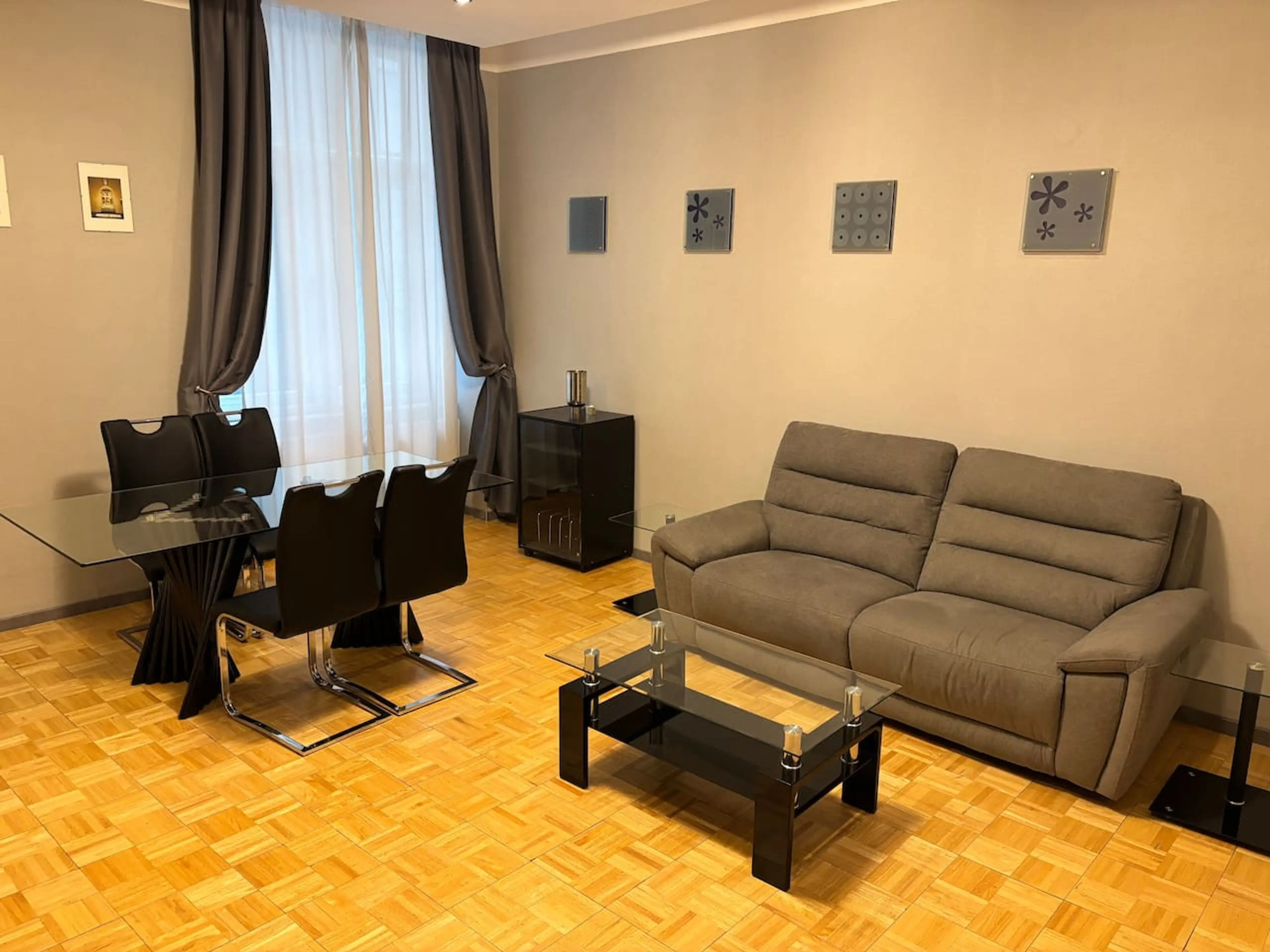 Cozy apartment for two people in the heart of Vienna’s 1st district. It features one separate bedroom, one bathroom, a spacious living room, a dining area and a fully equipped kitchen.